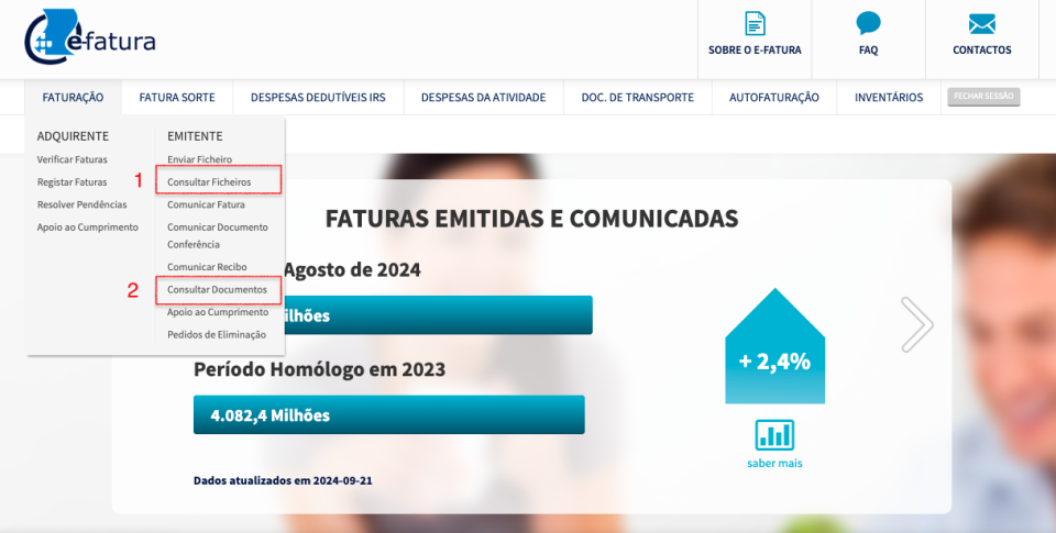 Para confirmar os documentos enviados para a Autoridade Tributária, deverá aceder ao site eFatura (do Portal das Finanças). Siga os seguintes passos:
