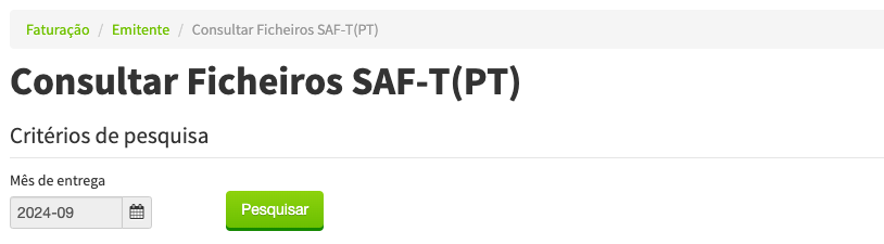 A Opção 2 permite pesquisar os documentos que emitiu e foram comunicados à AT. Coloque uma data de início, data de fim e clique em Pesquisar para que sejam devolvidos os resultados.