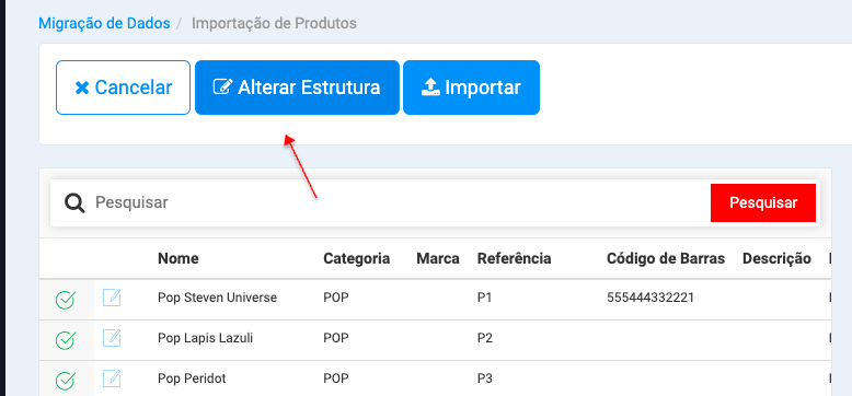 Caso haja algum erro na ordem das colunas, clique em Alterar Estrutura para fazer corresponder as colunas.