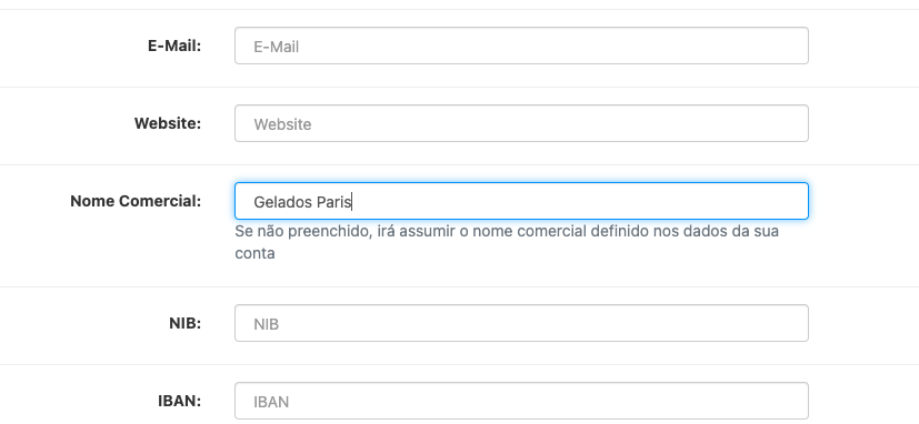 Irá visualizar um campo com a denominação de "Nome Comercial".