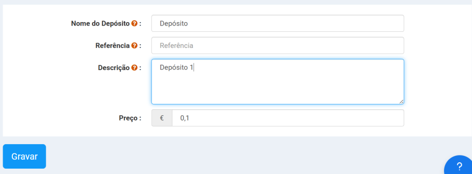 • O depósito será configurado com uma taxa de IVA isenta (M99 - Não sujeito ou não tributado definido);