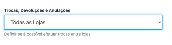 Já nos dados da empresa, procure a opção Trocas, Devoluções e Anulações. Aqui pode então seleccionar se permite ou não trocas entre lojas.